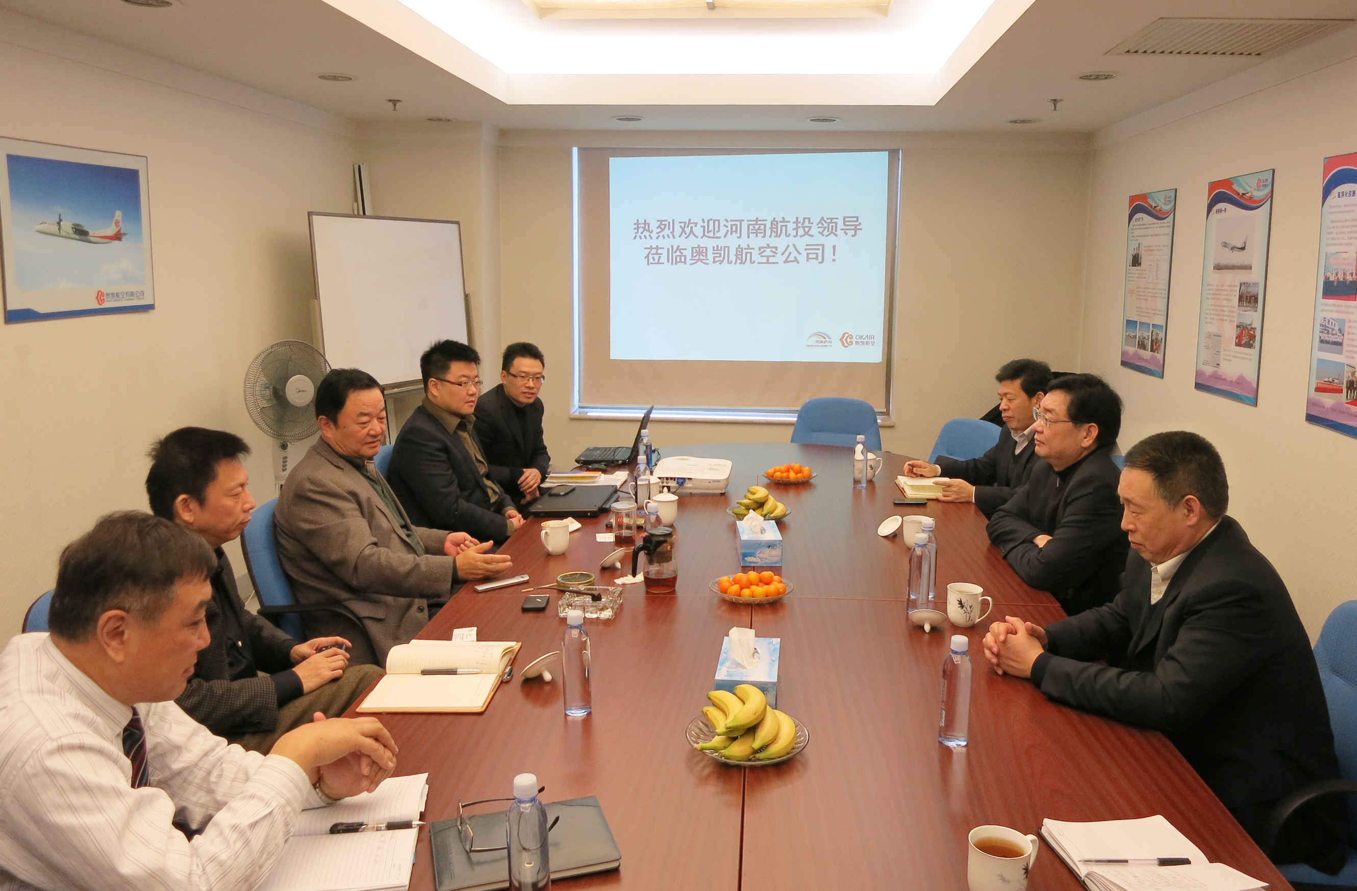 On January 18, 2014, Mr. Zhang Mingchao, the Chairman of HNCA and Mr. Liu Jianbao, the vice Chairman of HNCA visited Okay Airways Company Limited with the delegation, and made a further discussion on the matters of cooperation in general aviation area with Mr. Liu Weining, the CEO of Okay Airways.