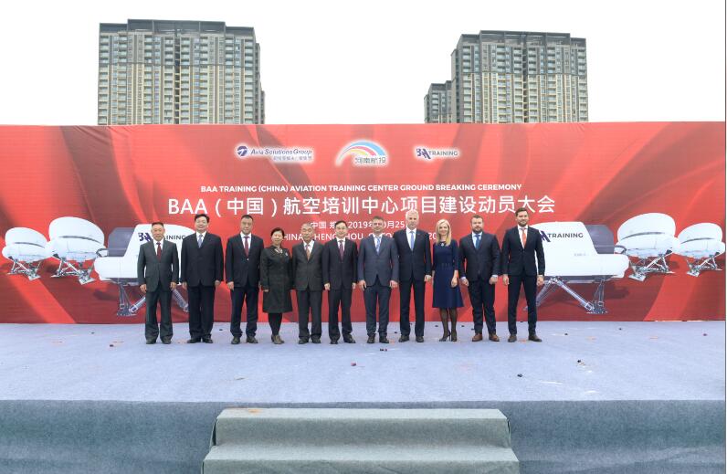 On the morning of 25th, October, the first aviation training project in central China ——BAA (China) started to construct . The project fills the gap of Henan aviation training industry and further improves the Henan civil aviation industry chain. Zhang Mingchao, Chairman of HNCA, Liu Jianbao, General Manager of HNCA, Gediminas, Chairman of Lithuania Avia Solutions Group, Vygaudas, Director of Lithuania Avia Solutions Group, Egle, General Manager of Lithuania BAA Training, Tomas, General Manager of AviaAM Financial Leasing (China) Co., Ltd., and Aurimas, General Manager of BAA (China) Aviation Training, laid the foundation for the project together.