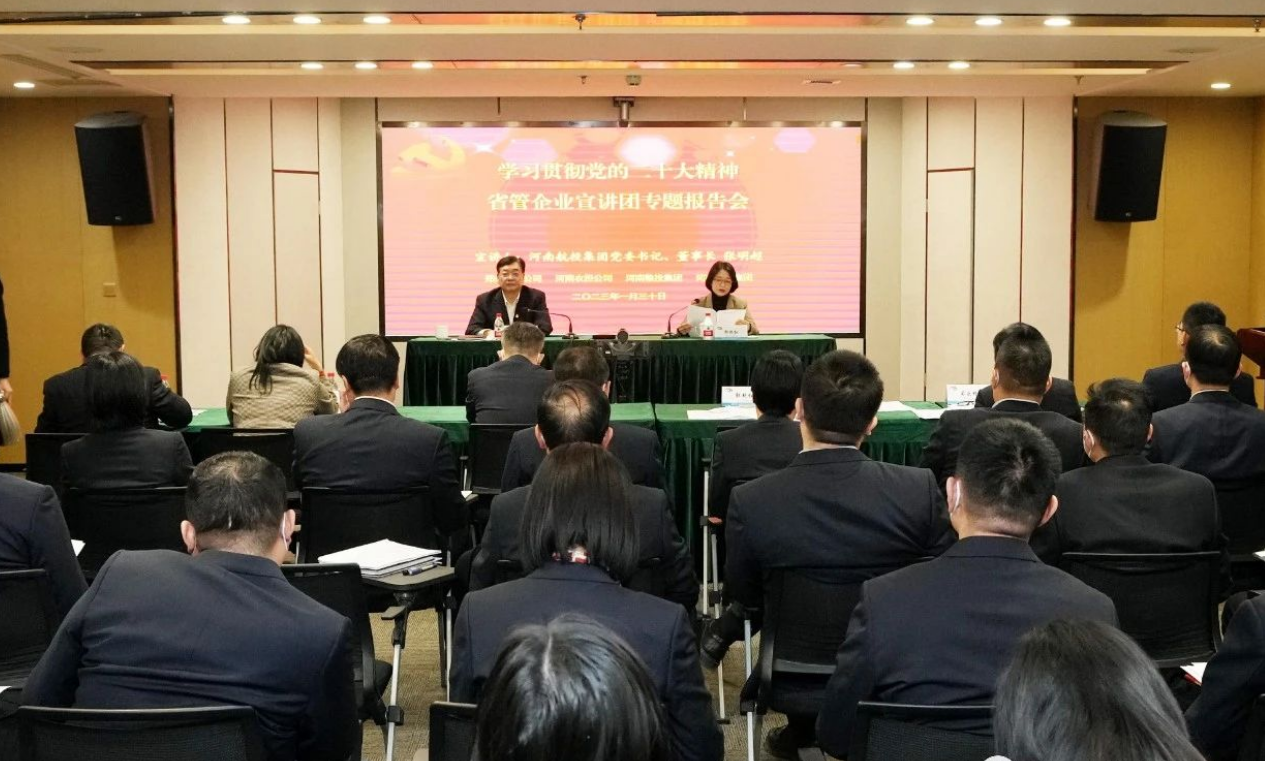 1月30日,按照省委和省政府國資委黨委統(tǒng)一安排部署,省管企業(yè)宣講團成員,河南航投集團黨委書記、董事長張明超在航空經(jīng)濟服務中心宣講黨的二十大精神。專題報告會以線上線下相結合的方式召開,鄭州糧批、河南農(nóng)擔、河南糧投黨員干部及員工代表同時參會。河南航投集團黨委副書記、工會主席郭艷紅主持會議,領導班子其他成員、中層管理人員及部分黨員代表現(xiàn)場參會。