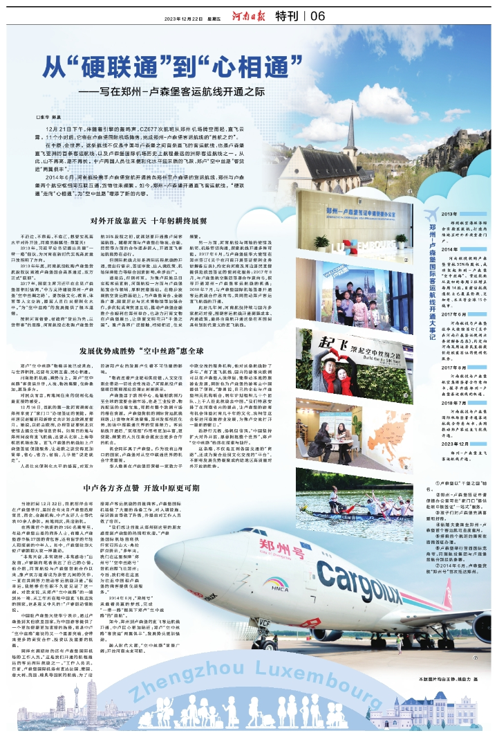 從“硬聯(lián)通”到“心相通”——寫在鄭州-盧森堡客運航線開通之際