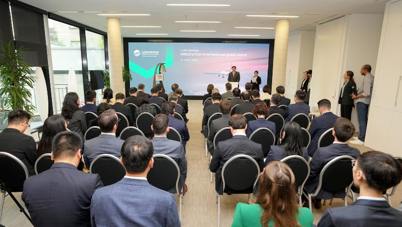 當(dāng)?shù)貢r間6月21日上午,中豫航空集團(tuán)以河南航投為主體發(fā)行的3年期人民幣境外債券上市儀式在盧森堡證券交易所舉行。這是中國企業(yè)在歐洲發(fā)行的首只支持可持續(xù)航空燃料(SAF)的綠色債券,也是河南企業(yè)發(fā)行的首只離岸人民幣綠色債券,鄭盧“空中絲路”資金融通實現(xiàn)新突破。