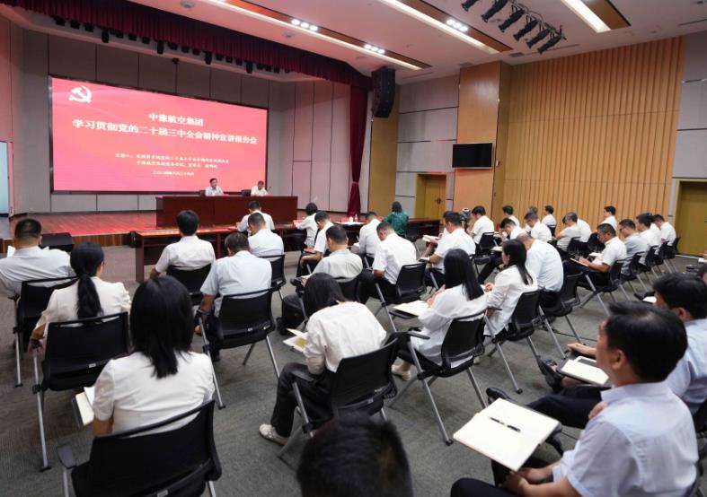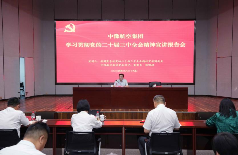 8月29日,按照省委和省政府國(guó)資委黨委部署,中豫航空集團(tuán)舉行學(xué)習(xí)貫徹黨的二十屆三中全會(huì)精神宣講報(bào)告會(huì)。省國(guó)資系統(tǒng)宣講團(tuán)成員,中豫航空集團(tuán)黨委書記、董事長(zhǎng)張明超作宣講報(bào)告,黨委副書記、總經(jīng)理、副董事長(zhǎng)柳建民主持會(huì)議,集團(tuán)領(lǐng)導(dǎo)班子在鄭成員、中層管理人員、青年員工代表約300人參會(huì)。