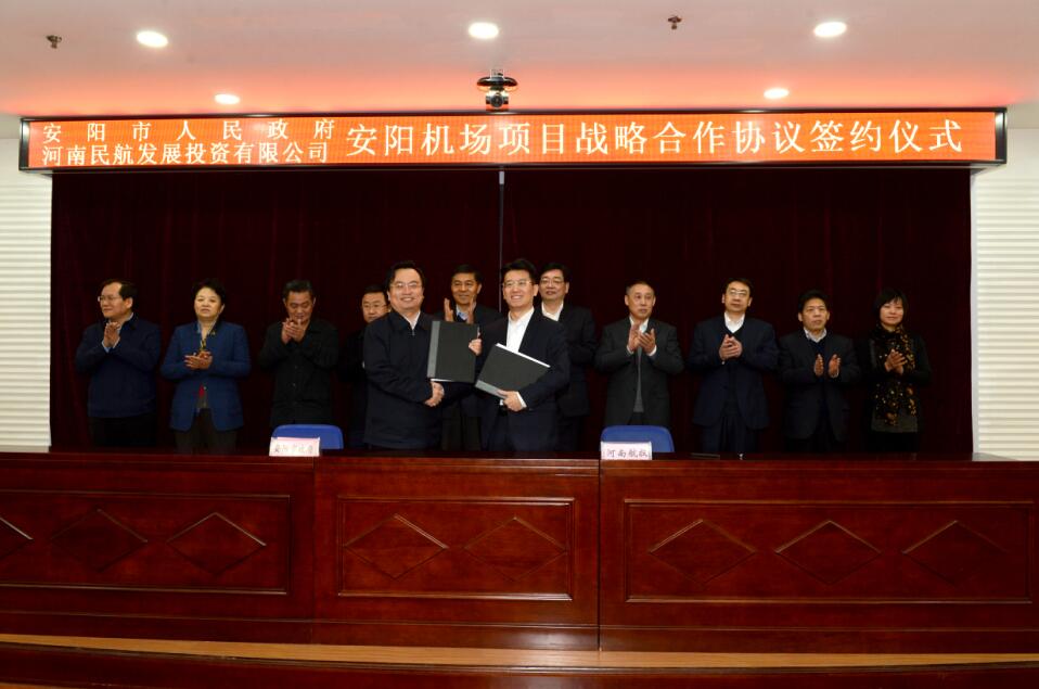 12月29日,河南航投與安陽市政府在安陽簽署《戰(zhàn)略合作協(xié)議》,在新年前就安陽豫東北機場的開工奠基舉行簡短而隆重的儀式。