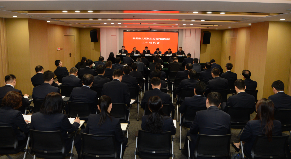 根據(jù)省委統(tǒng)一部署,10月10日上午,省委第九巡視組巡視河南民航發(fā)展投資有限公司(以下簡(jiǎn)稱河南航投)工作動(dòng)員會(huì)召開。省委第九巡視組組長(zhǎng)唐飛作動(dòng)員講話,河南航投黨委書記、董事長(zhǎng)張明超主持會(huì)議并作表態(tài)發(fā)言。第九巡視組副組長(zhǎng)楊慧中、李笑峰、張國(guó)典及相關(guān)成員,河南航投領(lǐng)導(dǎo)班子成員出席會(huì)議。河南航投各部門、子公司及項(xiàng)目部負(fù)責(zé)同志列席會(huì)議。